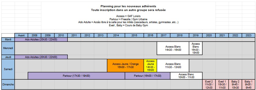 Né(e)s entre 2019 et 2008 – Loisir Gymnastique et Parkour